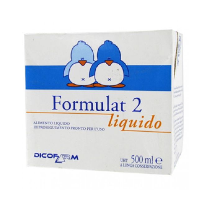 FORMULAT 2 LIQUIDO 500ML è un alimento di proseguimento, ideale per i neonati a partire dal 6° mese di vita oppure come proseguimento del Formulat 1 o di altre formule di partenza. Grazie al ridotto contenuto proteico (1,4 g/100 ml), Formulat 2 rispetta il cambiamento delle esigenze nutrizionali che si verifica nel secondo semestre di vita (divezzamento). Questo alimento è ideale per il proseguimento della nutrizione del lattante a partire dal 6° mese di vita, qualora l’allattamento al seno non sia possibile o sufficiente. FORMULAT LIQUIDO dev'essere abbinato ad un’alimentazione diversificata e non deve essere utilizzato in sostituzione del latte materno nei primi 6 mesi di vita. Come si utilizza? Agitare il brick prima di aprire e versare la quantità adeguata nel biberon precedentemente sterilizzato. Riscaldare a bagnomaria a 37°C circa, quindi somministrare al neonato.