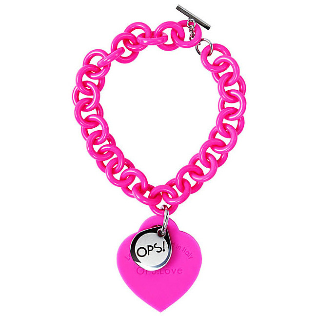 GIOIELLO BRACCIALE OPS LOVE IN MATERIALE PLASTICO GOMMA, INSERTO IN ACCIAIO, DIMENSIONI CUORE DIAMENTRO CIRCA CM 3,8 CHIUSURA IN ACCIAIO COLORE FUXIA FLUO
