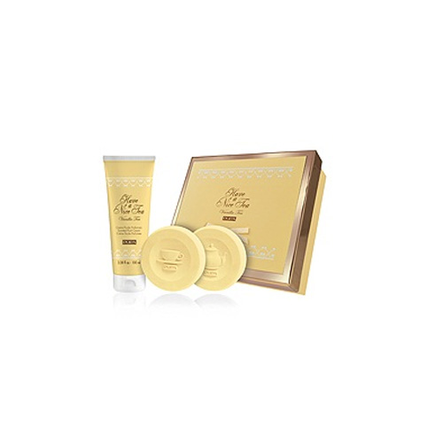 Un regalo raffinato presentato in preziose scatole decorate da inserti oro. Gustose fragranze dal profumo delicato e bon ton. 4 differenti colori pastello descrivono a pieno questa linea, riportando alla mente le delizie e latmosfera parigina: ROSE TEA BLUE TEA VANILLA TEA FRUITY TEA Allinterno prodotti per la cura di sè. Condividi con chi vuoi un Have a Nice Tea. VANILLA TEA: Una fragranza dolce e delicata Note di testa: anguria, limone, e mandarino Note di cuore: fiori darancio, gelsomino e rosa Note di fondo: muschio, vaniglia e patchouli Contenuto: Crema Fluida Profumata 100 ml, Sapone Naturale Profumato 100 gr Sapone Naturale Profumato 100 gr