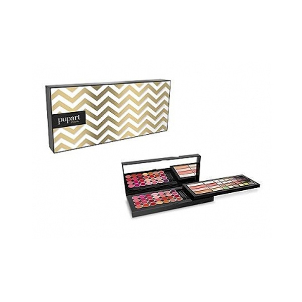 Motivi nordici abbinati a colori super chic. Davvero eleganti. Super completo e super compatto, regala trucchi per ogni occasione. E quanti colori! Per viso, occhi e labbra. Contiene: 2 fard compatti 1 fard in crema 1 cipria 1 terra 3 all over 3 correttori 1 primer occhi 20 ombretti 2 applicatori doppi 16 gloss 12 rossetti in crema