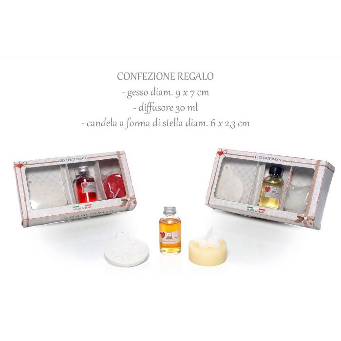 Mercury - Confezione regalo gesso + diffusore + candela. Gesso 9x7 cm, diffusore fragranza da 30 ml e candela a stella diametro 6x2,3 cm. COLORI ASSORTITI. NOTA BENE: L'articolo e' disponibile in modelli assortiti, al momento dell'ordine sara' inviato un solo prodotto in base alla disponibilità del magazzino.