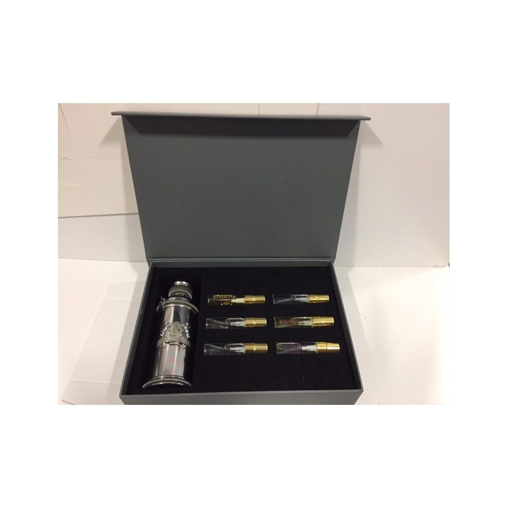 Questa confezione regalo contiene: 100ml Argentic EDP; 5 ml Iris Violet EDP; 5 ml Black Muscs EDP; 5 ml Morning Muscs EDP; 5 ml Rose Oud EDP; 5 ml Zafeer Oud Vanille EDP; 5 ml Golden Oud EDP.