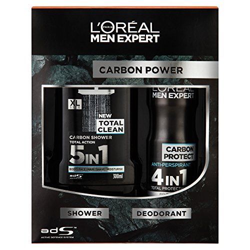 L'Oreal Paris Men Expert The Carbon Power Confezione Regalo 300 ml 5in1 Gel Doccia + 150 ml Anti-Traspirante Spray.