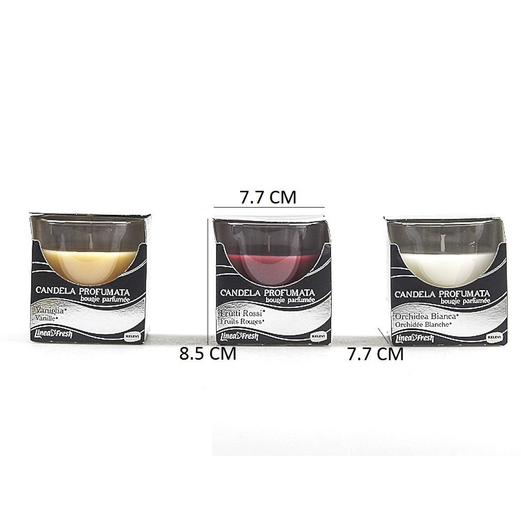 LINEA FRESH CANDELA PROFUMATA 120G FRAGRAZNE ASSORTITE (NO SCELTA) L'articolo e' disponibile in modelli assortiti, al momento dell'ordine sara' inviato un solo prodotto in base alla disponibilità del magazzino. NON E' POSSIBILE SCEGLIERE LA VARIANTE.