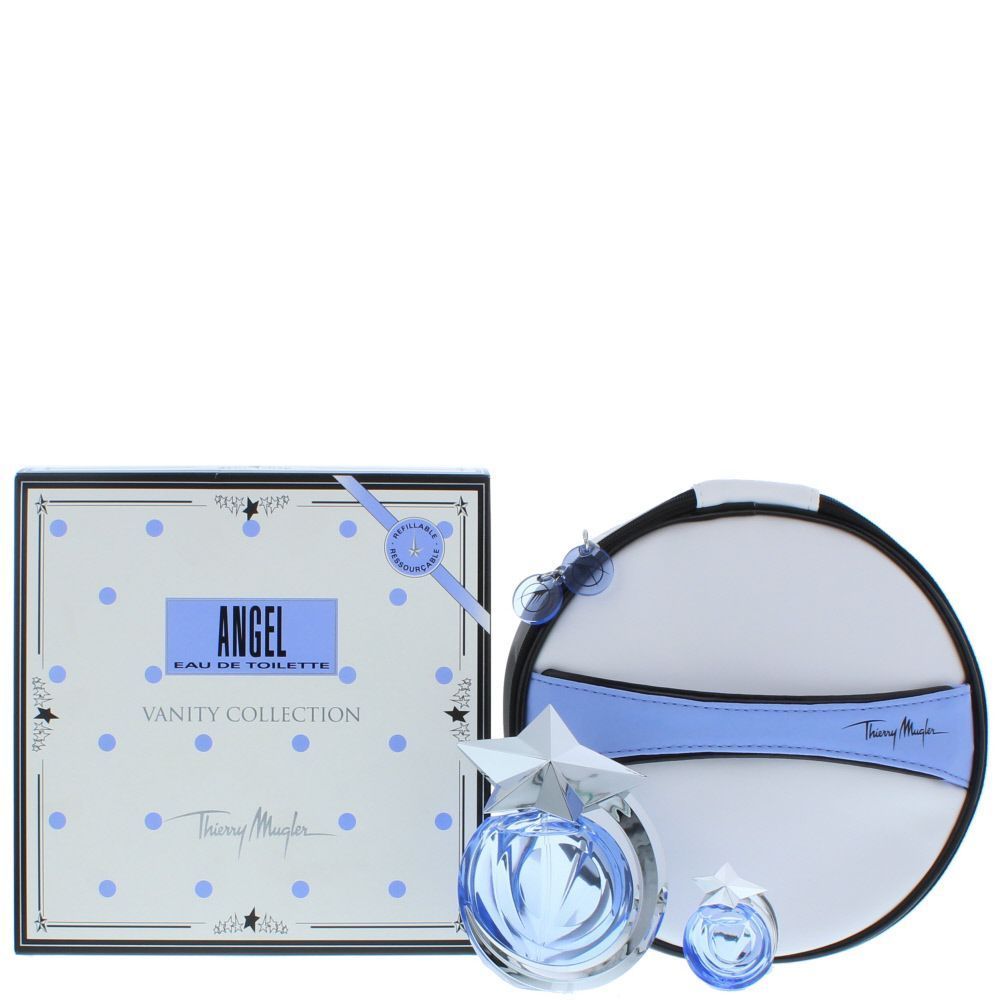 Thierry Mugler Angel Confezione Regalo 40 ml EDT + 3 ml EDT Mini + Borsa per il Trucco donna: Angel ha note gustose di cioccolato, vaniglia e caramello, si rivolge ai sensi, per mettervi alla prova e farvi provare come dessert. Miele ed aromi di frutta completano questa fragranza popolare, conferendo un fascino profondamente sexy. Angel è un profumo ammaliante, affascinante e piacevole, con dolci note di patchouli, pralina, caramello e vaniglia.