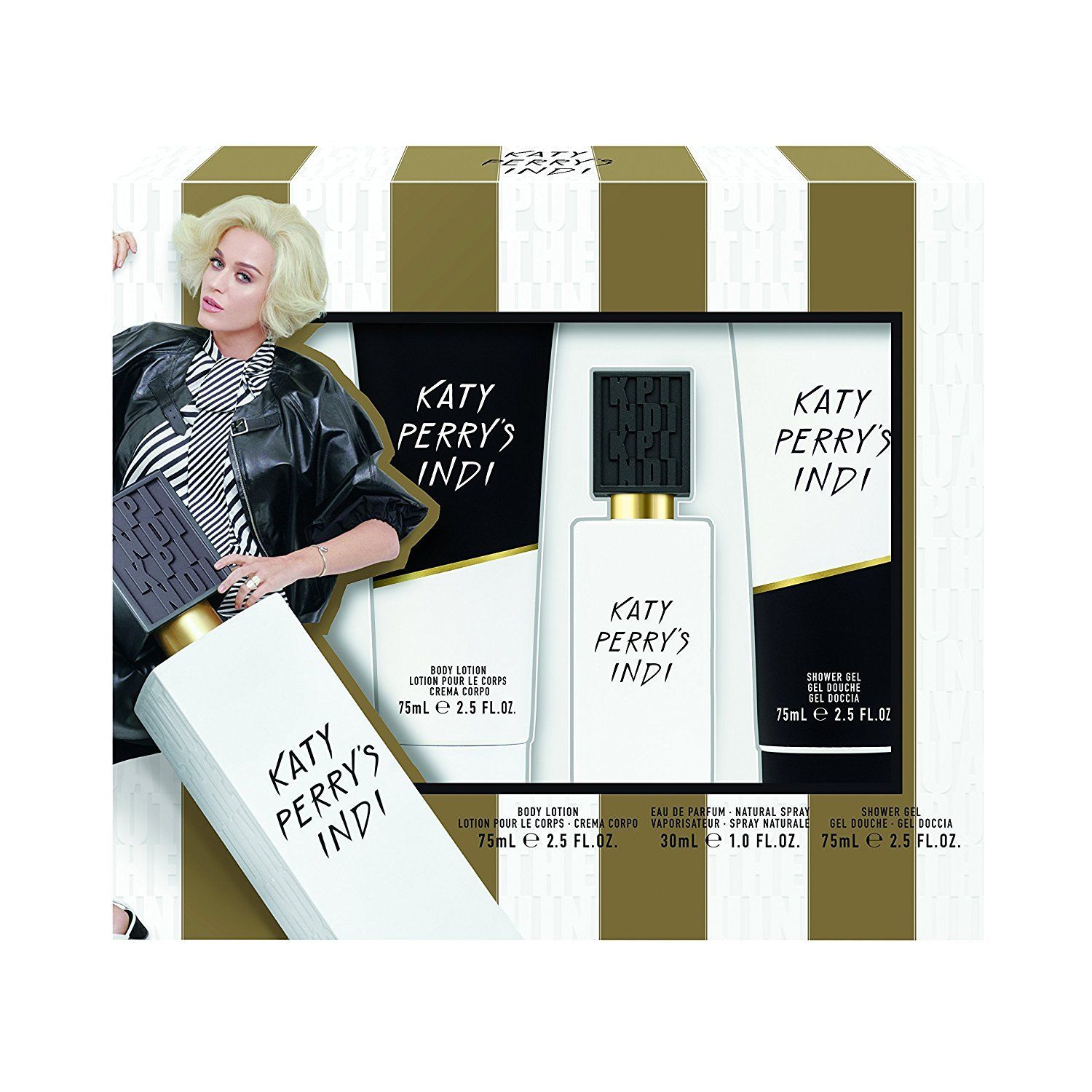 Katy Perry's Indi Confezione Regalo 30 ml edp + 75 ml Gel Doccia + 75 ml Lozione Corpo Donna: Katy Perry's Indi è una fragranza femminile floreale, legnosa al muschio. Contiene note di muschio, thè bianco, cedro, prugna, ambra, ciclamino, fava tonka, bergamotto e mughetto. Katy Perry's Indi è stato lanciato nel 2017.