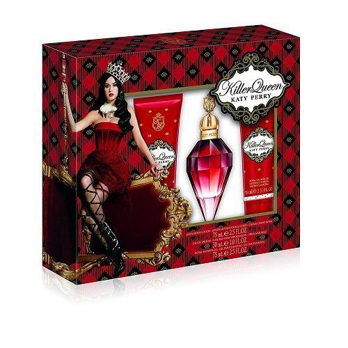 Katy Perry Killer Queen Confezione Regalo 30 ml EDP + 75 ml Lozione Corpo + 75 ml Doccia Gel Donna: Katy Perry Killer Queen è una fragranza floreale-fruttata che prende il suo nome dalla canzone "Killer Queen", scritta da Freddie Mercury. Contiene note di frutti di bosco, prugna scura e bergamotto, fiore rosso vellutato (gelosia), gelsomino Sambac e plumeria, cashmere, patchouli e pralina liquida. Killer Queen è stato lanciato nel 2013.