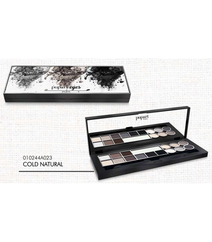 PUPA TROUSSE PUPART S EYES 023 NATURAL CHE CONTIENE: 1 Primer, 8 OMBRETTI COMATTI, 1 Eyeliner, 6 Ombretti in crema, 1 pennello doppio, 1 pennello eyeliner