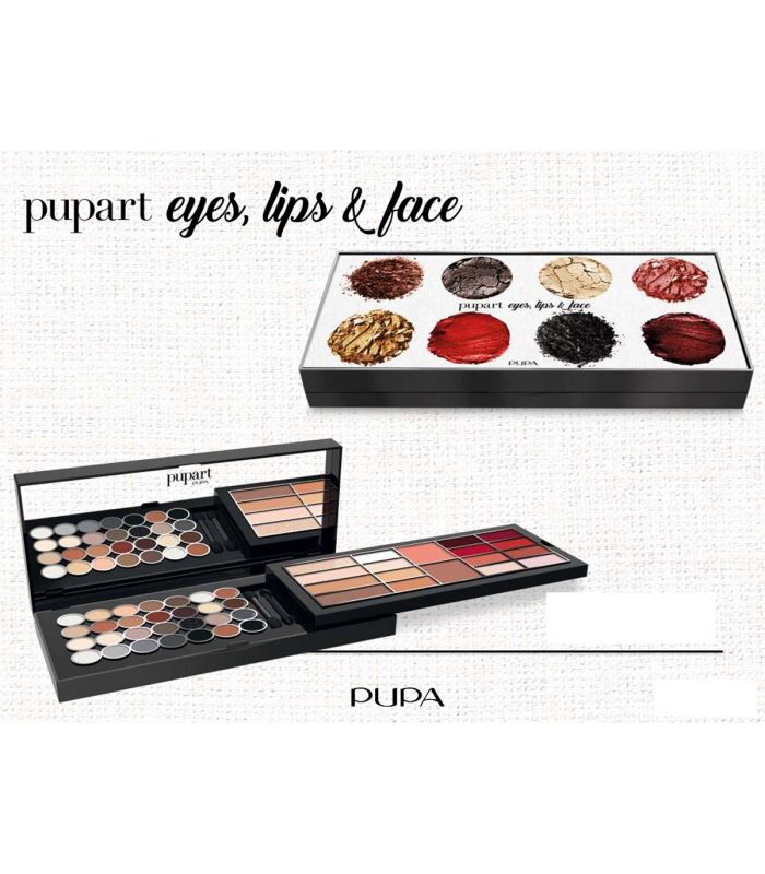 PUPA TROUSSE PUPART L FACE-EYES-LIPS 01 Essentiel Gold CHE COMPRENDE YEUX - 1 Primer - 20 Ombres à paupières compactes - 4 Ombres à paupières en crème - 4 Eyeliners crème - 1 Double applicateur - 1 Applicateur pour eyeliner - LÈVRES - 1 Primer - 2 Rouges à lèvres mats - 2 Rouges à lèvres traditionnels - 2 Rouges à lèvres brillants - 1 Brillant à lèvres - VISAGE - 2 Fards à joues compacts - 3 Correcteurs - CONTOURING&STROBING - 1 Poudre compact - 2 Poudres Bronzantes - 1 Illuminateur de teint