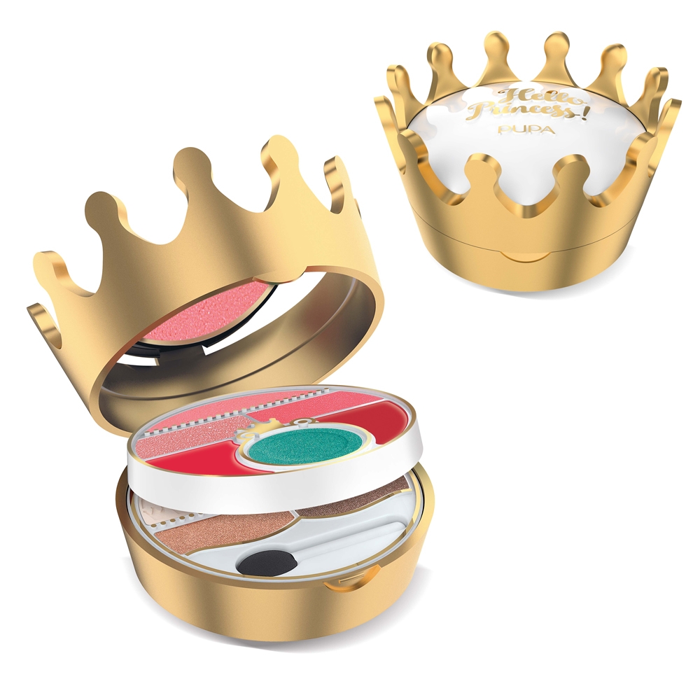 Hello, Princess! Per sentirti principessa tutti i giorni! Al suo interno il make up indispensabile per un trucco viso naturale, occhi in primo piano e labbra super shining. E un pratico specchio per i ritocchi in ogni momento. Un regalo prezioso. Un simbolo di regalità. Contenuto: 1 fard in crema 1 all over 1 primer occhi 5 ombretti compatti 1 applicatore 2 lip cream 2 gloss specchio