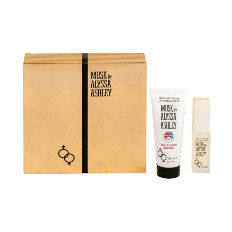 ALYSSA ASHLEY MUSK CONFEZIONE REGALO CHE COMPRENDE IL PROFUMO 25 ML + LOZIONE HAND & BODY LOTION TRIPLE ACTION COMPLEX 100 ML. Musk di Alyssa Ashley è una fragranza del gruppo Floreale Legnoso Muschiato unisex. La nota di testa è Bergamotto; le note di cuore sono Gelsomino, Geranio, Ylang Ylang e Rosa; le note di base sono Muschio Animale, Iris, Muschio di Quercia e Fava Tonka.