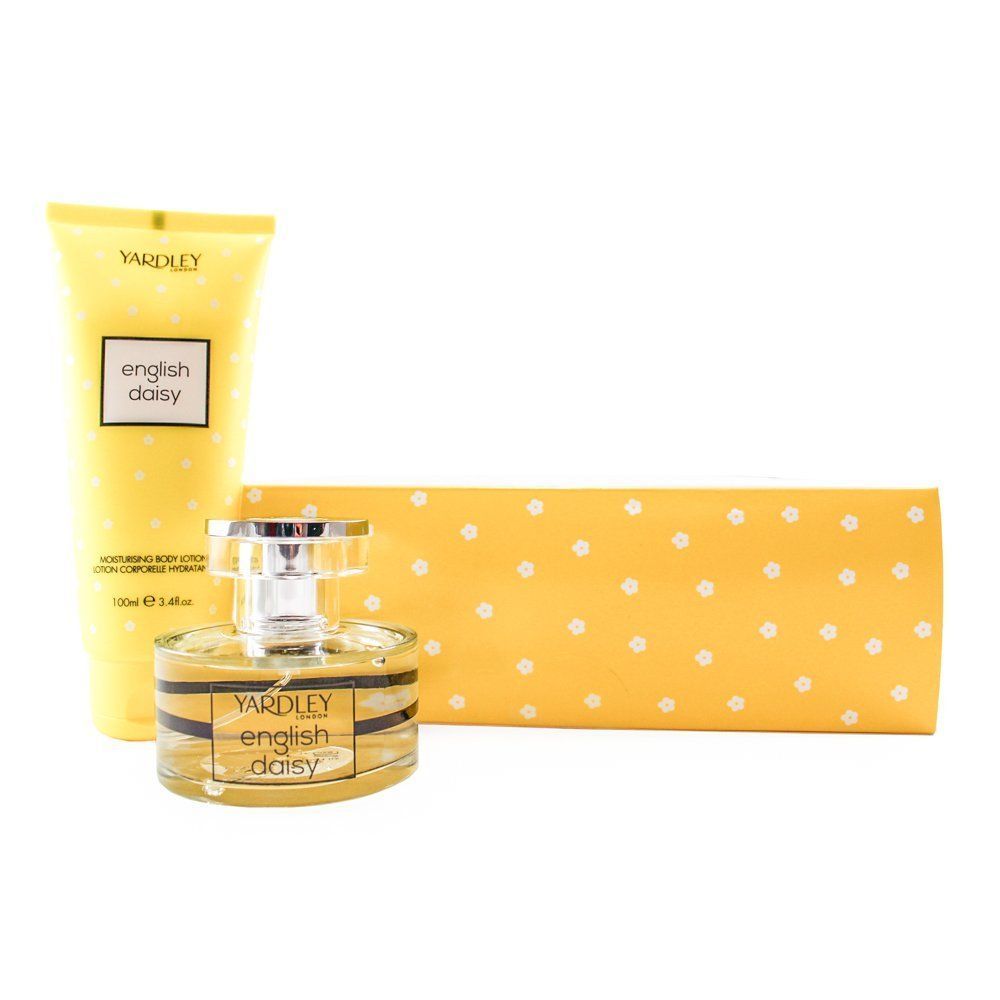Yardley English Daisy Gift Set 50 ml EDT + 100 ml Body Lotion donna: English Daisy di Yardley è un profumo fruttato. Contiene note di mela Granny Smith, foglie verdi, giacinto, rosa bianca, muschio e legno di sandalo. English Daisy è stato lanciato nel 2011.
