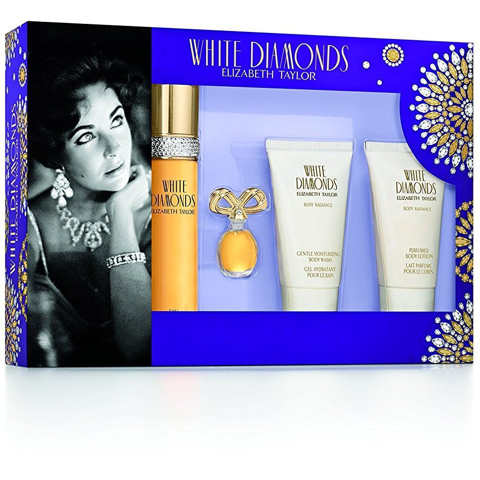 Elizabeth Taylor White Diamonds Confezione Regalo 100 ml EDT + 50 ml Lozione Corpo + 50 ml Bagnoschiuma + 3.7 ml EDP Donna: White Diamonds di Elizabeth Taylor é una fragranza fresca, floreale e legnosa. Contiene note di neroli, giglio, tuberosa, rosa, iris, narciso, gelsomino, legno di sandalo, patchouli, ambra e muschio di quercia. White Diamonds di Elizabeth Taylor è stato lanciato nel 1991.