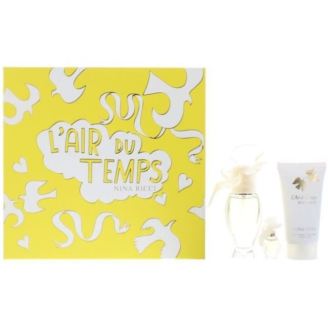 Nina Ricci L'air Du Temps Confezione Regalo 30 ml EDT + 50 ml Body Lotion + 2.5 ml EDT Donna: L'Air du Temps di Nina Ricci è una fragranza floreale. Questo classico capolavoro è un'unica combinazione di contrasti. L'accordo leggendario di garofano speziato e gardenia è sfumato sottilmente con note di rosa e gelsomino e prende forma con note di legno di sandalo e iris. L'air du Temps emana la primavera e il rinnovo. La fragranza si mischia con la personalità di ogni donna per far emergere il suo charme sensuale e raffinatezza. L'Air du Temps di Nina Ricci è stato lanciato nel 1948.