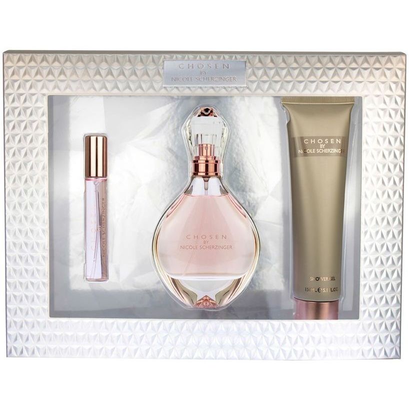 Nicole Scherzinger Chosen Confezione Regalo 100 ml EDP + 15 ml EDP + 150 ml Doccia Gel Donna: Chosen di Nicole Scherzinger è una fragranza con una scia sensuale fruttata e gourmand. L'apertura è un accordo succoso di arancia, mele, pesche e pere. Un cuore dolce e caldo combina gelsomino con caramello dorato, mentre una base terrosa unisce patchouli, vaniglia e muschio.