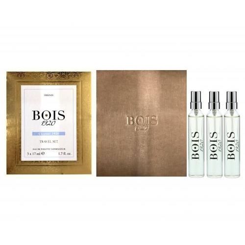 Bois 1920 Classic 1920 Set Viaggio edt 3 x 17 ml Unisex: Bois 1920 Classic 1920 è un profumo che alterna piacere e mistero, risvegliando emozioni sopite. La costruzione olfattiva si apre con armoniche note speziate, ammorbidite da un complesso bouquet fiorito ed eleganti sfumature fruttate; il fondo vede note verdi e boisé del Vetiver di Haiti e del Cedro di Cina unite all’ esotico Sandalo delle Antille.