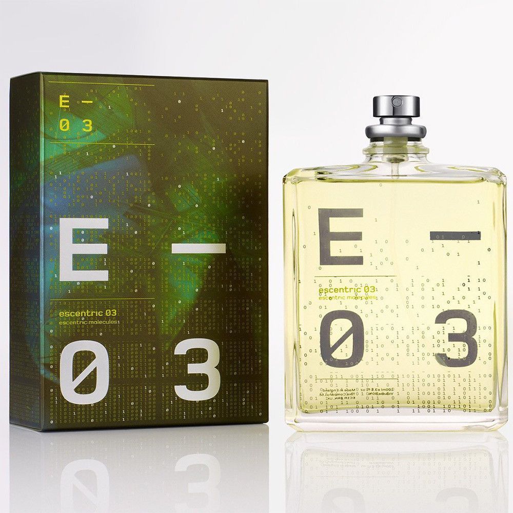 Escentric Molecules Escentric 03 unisex è un tributo ad una sfaccettatura più consueta del vetiver, oscura e leggermente esotica e legnosa. Si apre con un’esplosione di freschezza grazie alle radici di zenzero ed alle note verdi di testa di lime messicano e pepe. Il cuore di iris è circondato dal gelsomino egiziano e da dolci note di tè. Sul fondo della composizione leggere note di vetiver sono ammorbidite da ambra, legno di sandalo, cedro, cuoio e muschio.