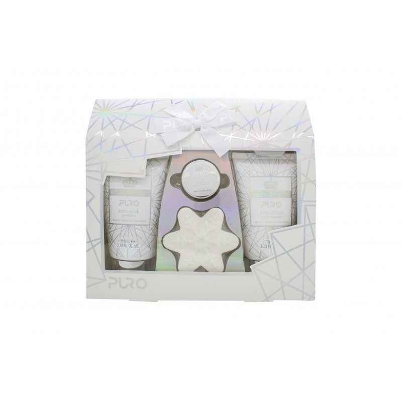 Style & Grace Puro Gift Of The Glow Confezione Regalo 4 Pezzi contiene: 1 x 10 ml Balsamo Labbra; 1 x 50 g Bomba Da Bagno; 1 x 110 ml Lozione Corpo; 1 x 110 ml Bagnodoccia.