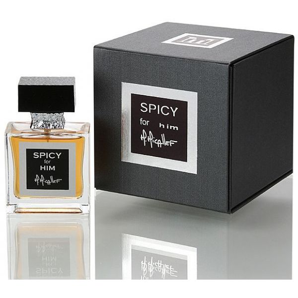 M. Micallef Spicy for Him è un profumo orientale-speziato. Le note di testa sono Lavanda, Artemisia e Limone di Amalfi; le note di cuore sono Patchouli, Resina, Noce Moscata e Abete; le note di base sono Muschio Animale, Muschio di Quercia e Ambra.