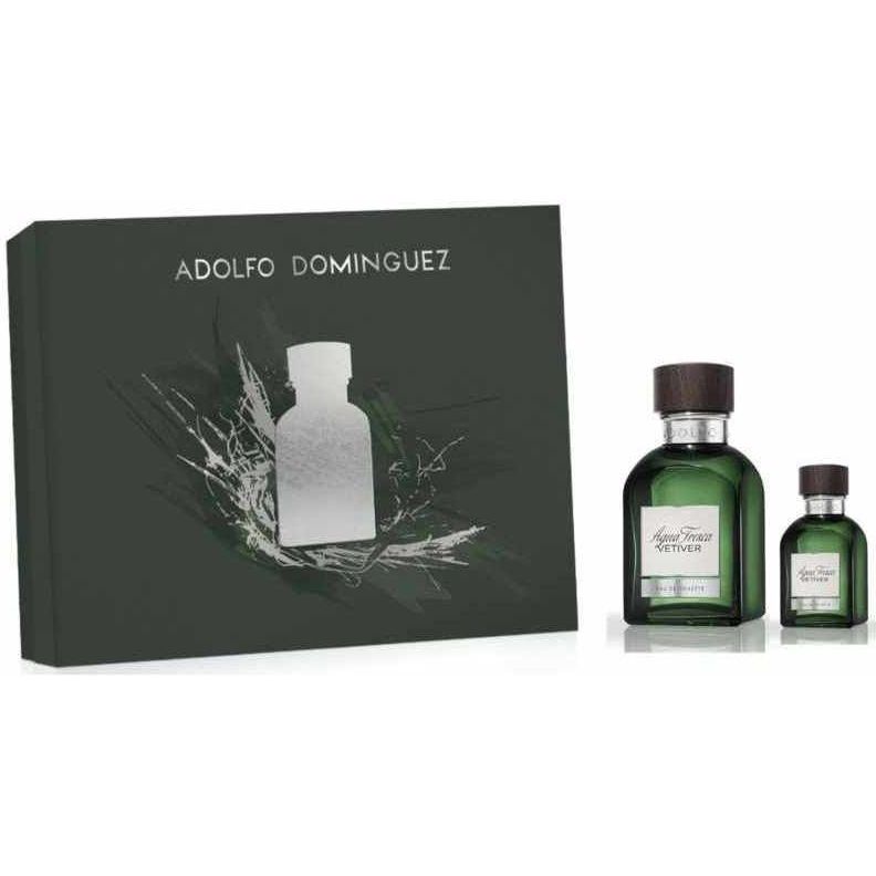 Adolfo Dominguez Agua Fresca Vetiver Confezione Regalo 120 ml edt + 30 ml edt Uomo. Agua Fresca Vetiver è un profumo aromatico e legnoso. Contiene note di Radice di Vetiver, Note Legnose, Lavanda, Neroli, Bergamotto, Mandarino e Rabarbaro.
