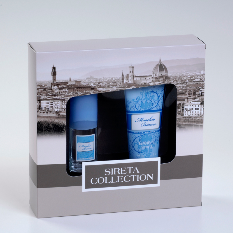 SIRETA COLLECTION MUSCHIO BIANCO Confezione Contenente: Muschio Bianco Eau de Parfum 30 ml spray Muschio Bianco Bagno Doccia 100 ml