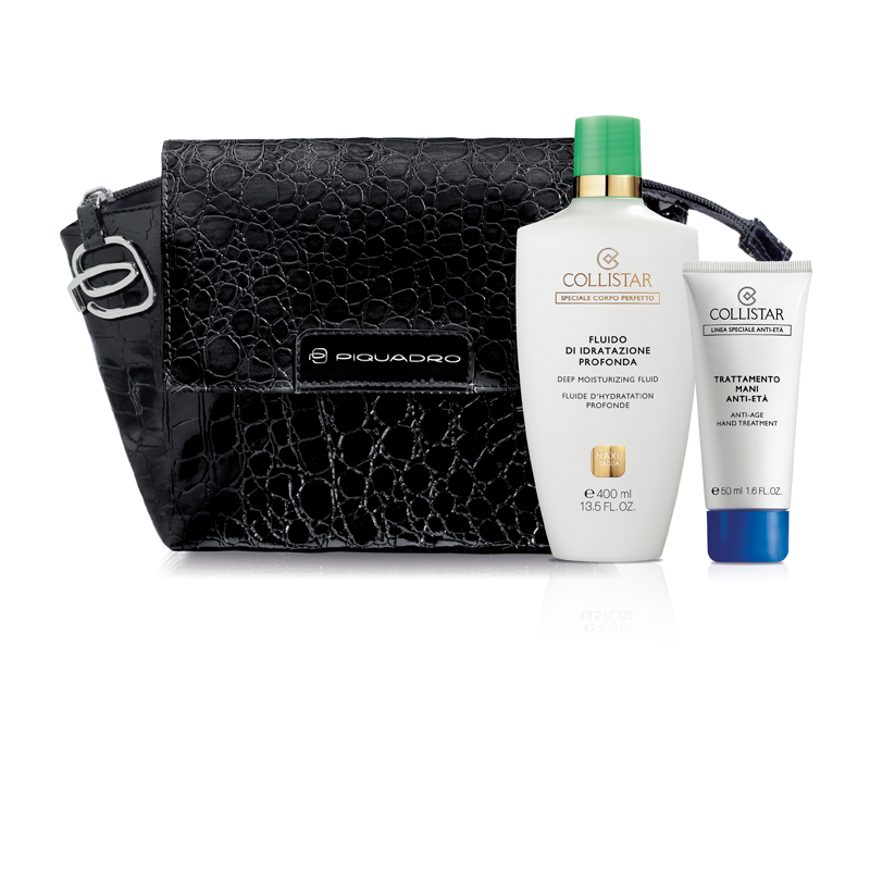 COLLISTAR CORPO Confezione Contenente: Maxi Taglia Fluido di Idratazione Profonda 400 ml Trattamento Mani Anti-Età 50 ml Borsa Piquadro