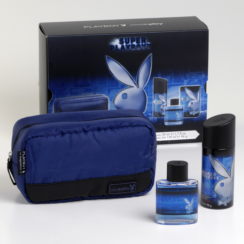 PLAYBOY PRESSTOPLAY SUPERPLAYBOY Confezione Contenente: - Eau de Toilette 50 ml spray; - Deodorante Profumato 24H 150 ml spray; - Beauty Case.