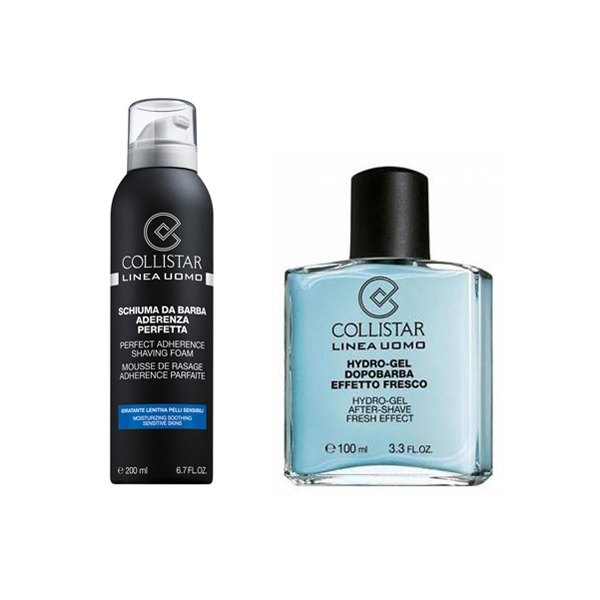 In questo kit, il tuo amato riceverà: - Collistar Uomo Schiuma da Barba Aderenza Perfetta Per Pelli Sensibili 200 ml - Collistar Uomo Hydro-Gel Dopobarba Effetto Fresco 100 ml